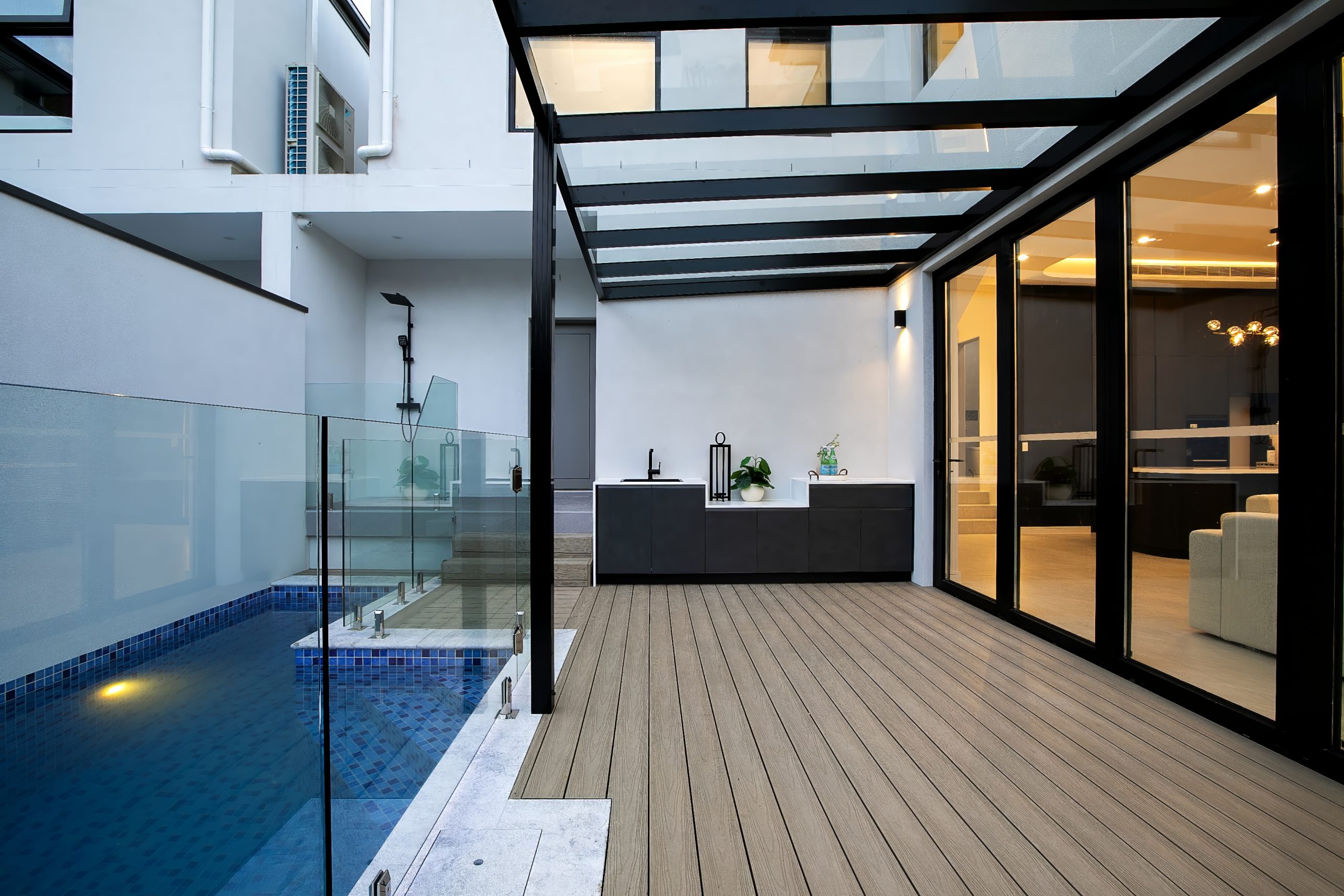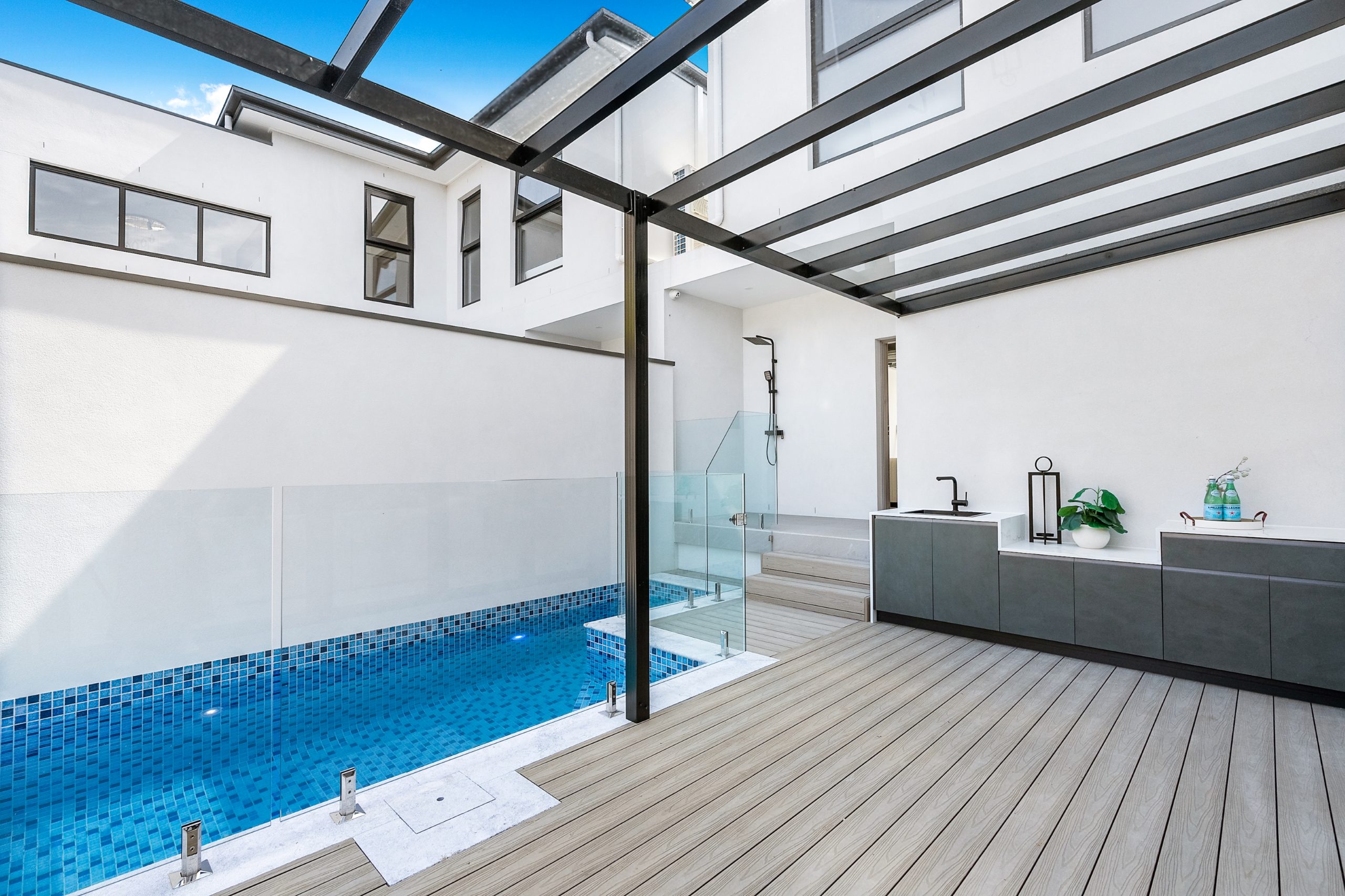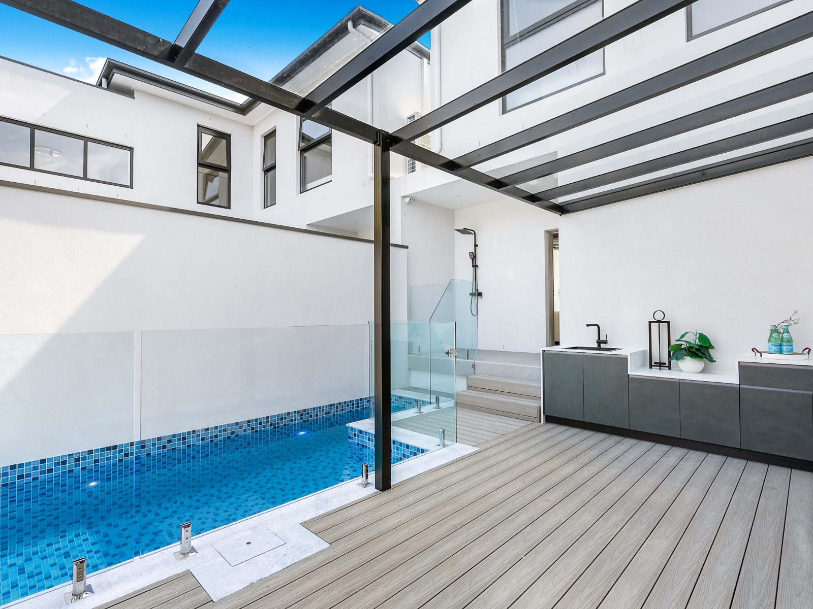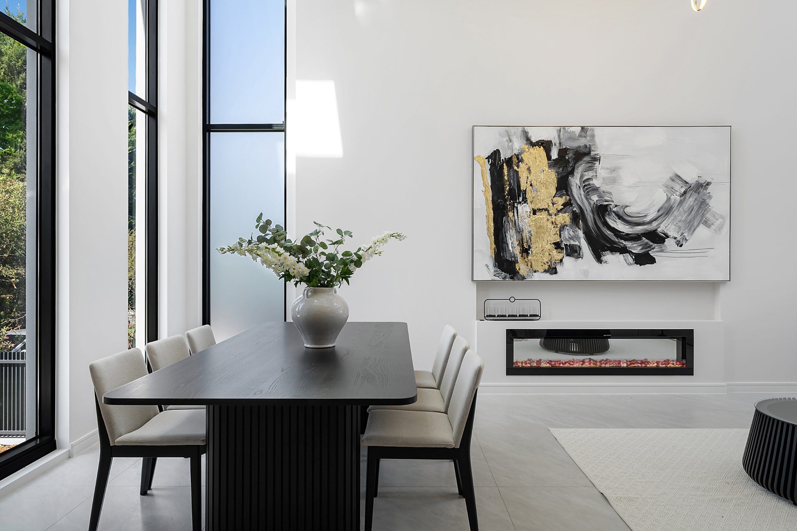 The design focuses on light, proportion, and spatial flow, using large openings and double-height spaces to create a refined and highly liveable environment.