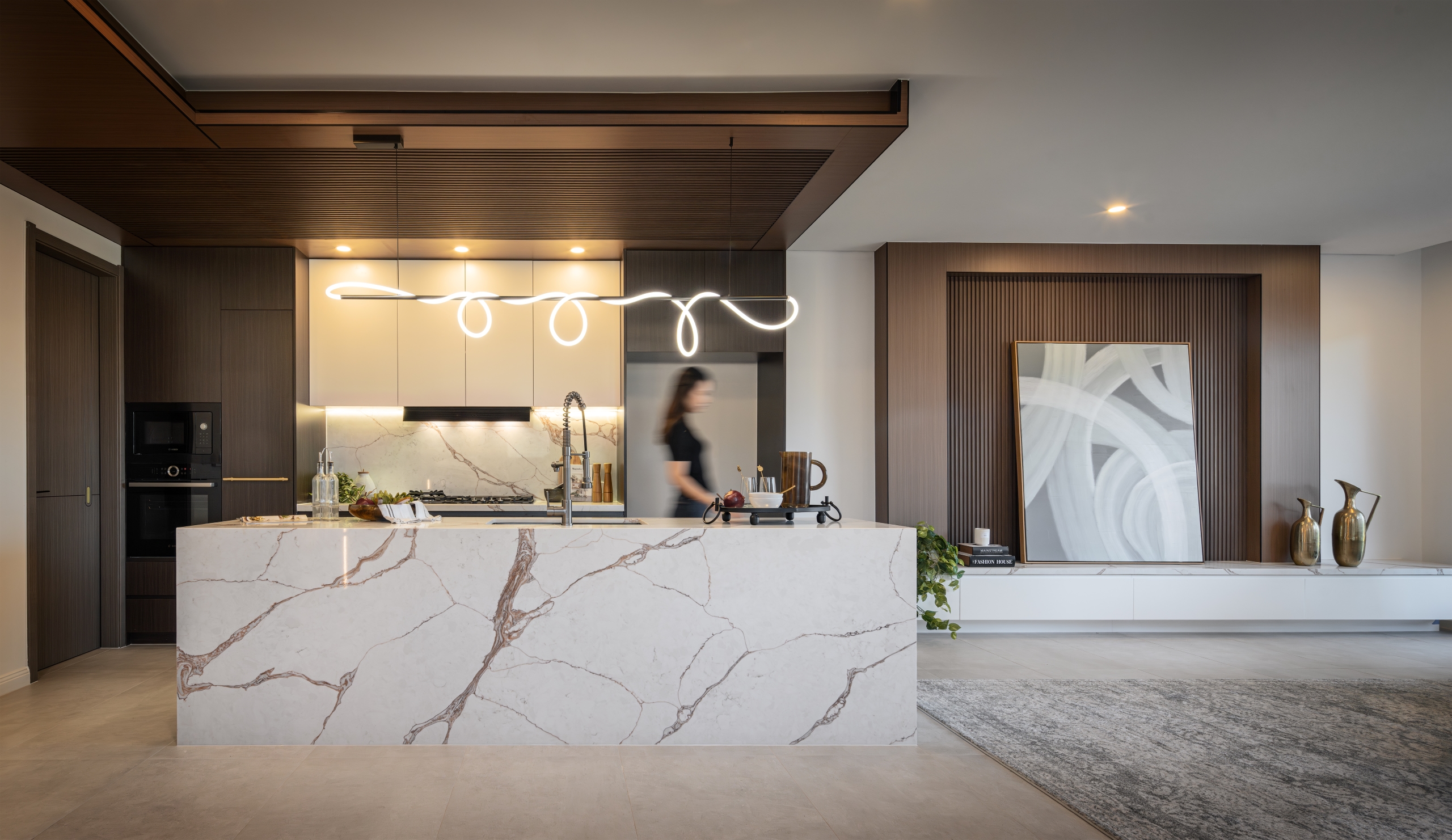 The design required balancing symmetry and individuality, while maximising light and space within a duplex configuration. Creating a cohesive identity while ensuring privacy was also essential.